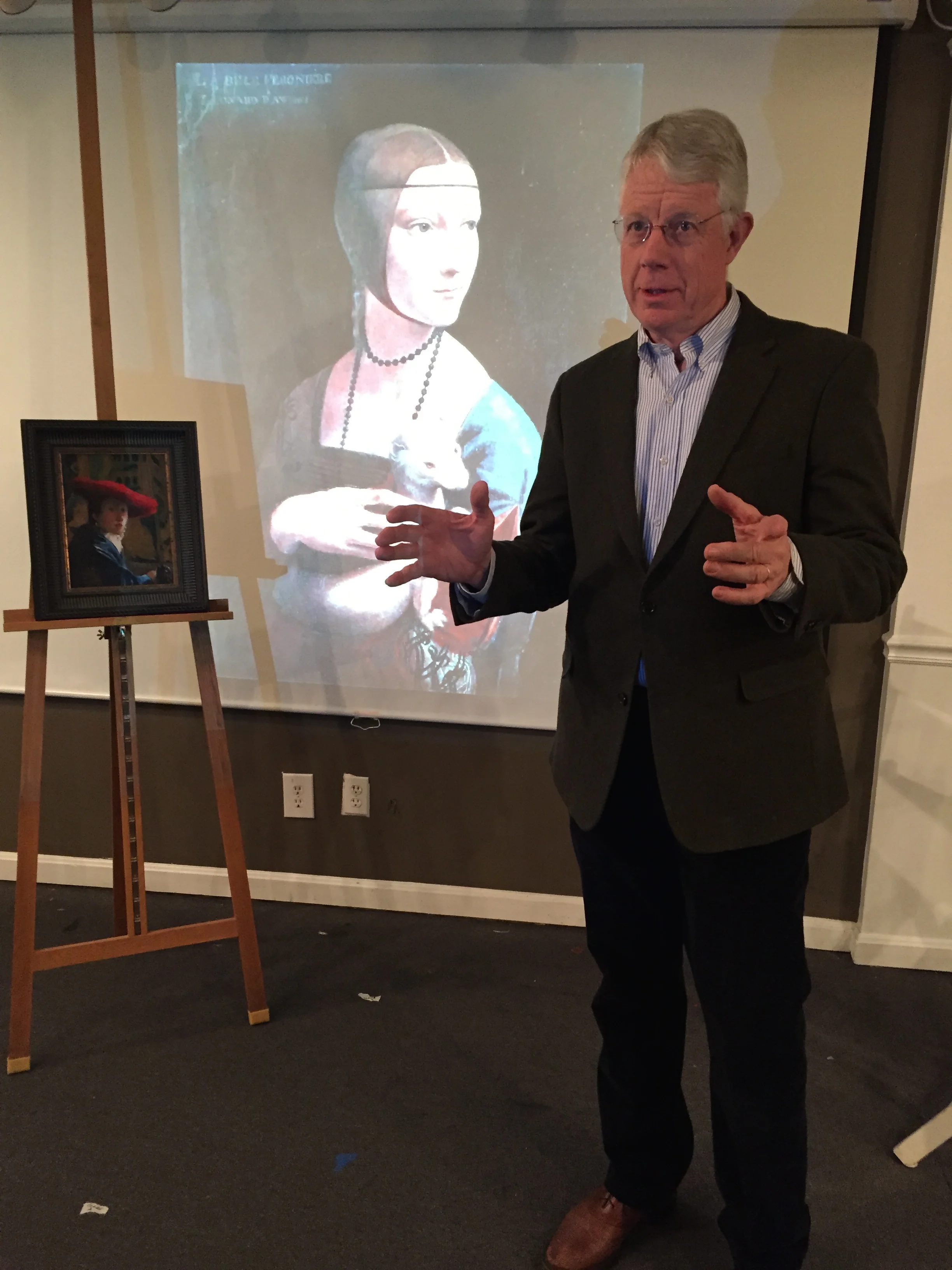 For example, John will talk about The Girl with the Red Hat by Vermeer, held by the National Gallery of Art, da Vinci’s Lady with an Ermine, Hans Holbein’s portrait of Sir Thomas More, John Singer Sargent’s portrait of Madam X, as well as works by Caravaggio and Velázquez, and a number of other masterpieces of portraiture.