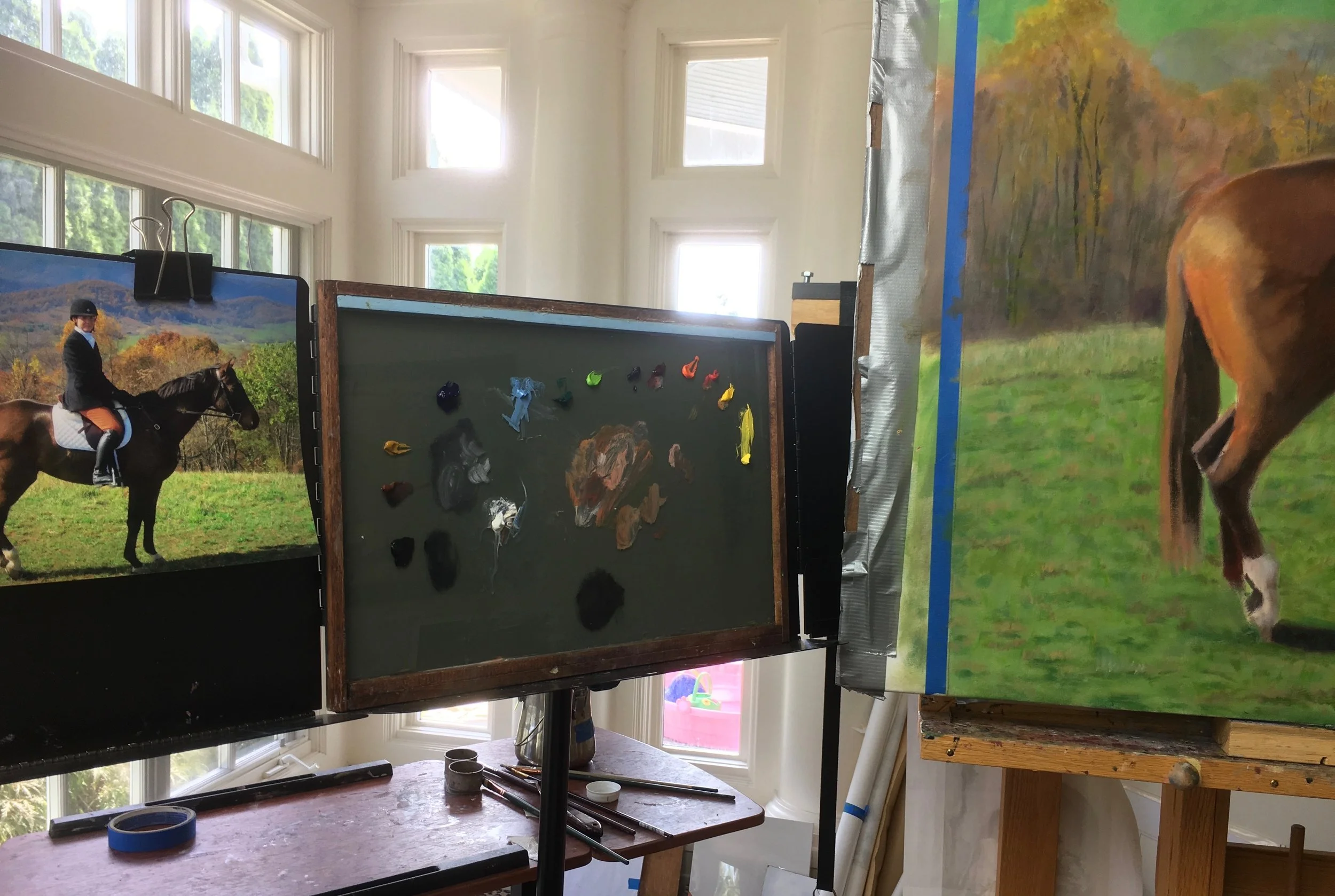 The paints on my palette may vary from time to time and certainly change based on the work at hand. But below is a list of the most common used paints. This list is also the order in which I lay paints out on my palette. I like Gamblin paints, but use both Gamblin and Holbein brand Titanium White, as well as other quality brand colors.
